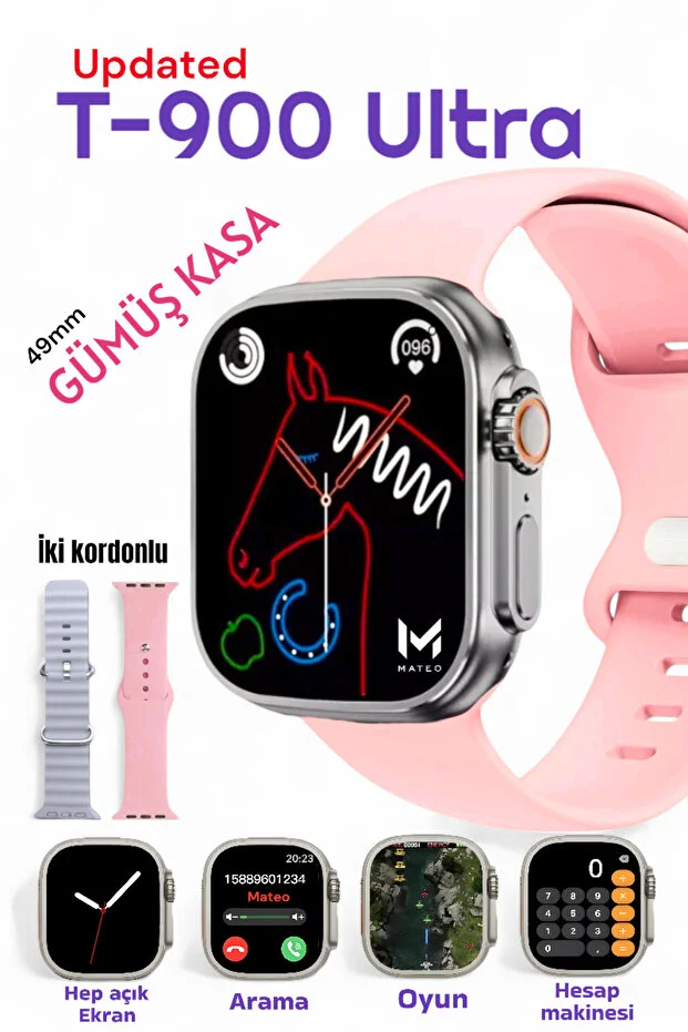 ساعة MATEO T900 ULTRA الذكية باللون الوردي، مقاس 49 مم، مزودة بتقنية بلوتوث، وخاصية الاتصال، ومستشعر صحي، ومتوافقة مع نظامي iOS وأندرويد.ساعة MATEO T900 ULTRA الذكية باللون الوردي، مقاس 49 مم، مزودة بتقنية بلوتوث، وخاصية الاتصال، ومستشعر صحي، ومتوافقة مع نظامي iOS وأندرويد.