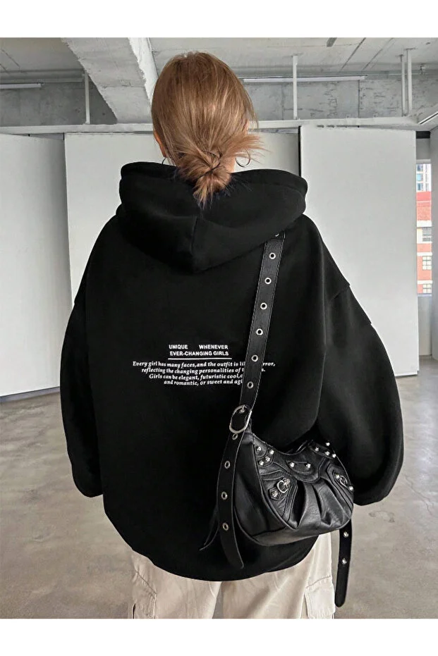 سويت شيرت شتوي واسع بغطاء رأس مطبوع عليه نجمة سوداء وحجر، مصنوع من القطن بنسبة 100%، بثلاثة خيوط.