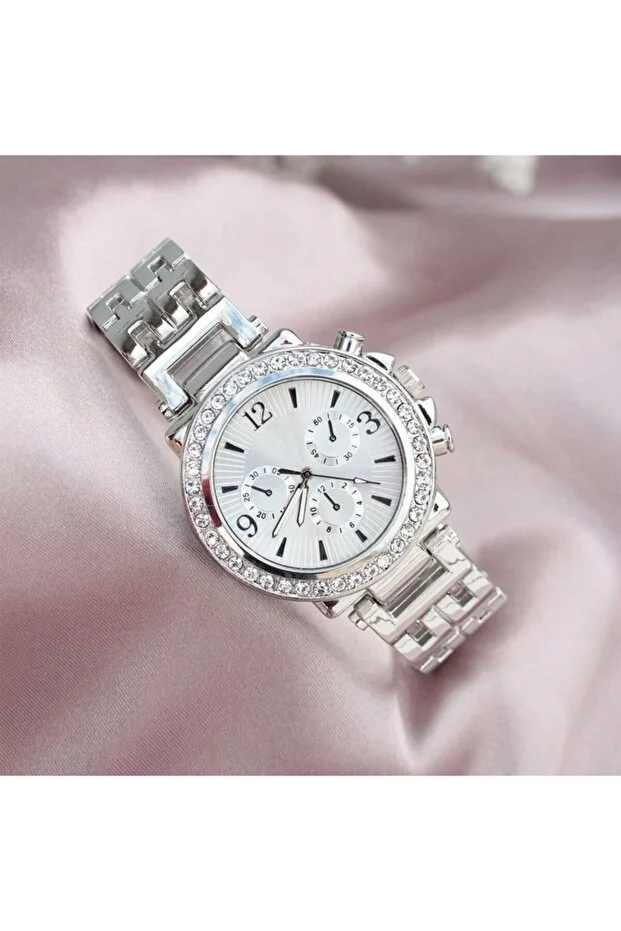 0 Review Of Product İSTLİV ساعة يد نسائية كلاسيكية من الفولاذ الفضي مرصّع بالأحجار (السوار غير متضمن في السعر...)