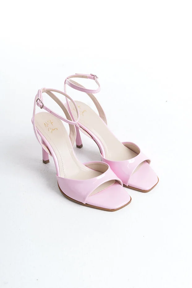 أحذية نيتو ذات الكعب العالي المصنوعة من الجلد اللامع الوردي مع حزام للكاحل