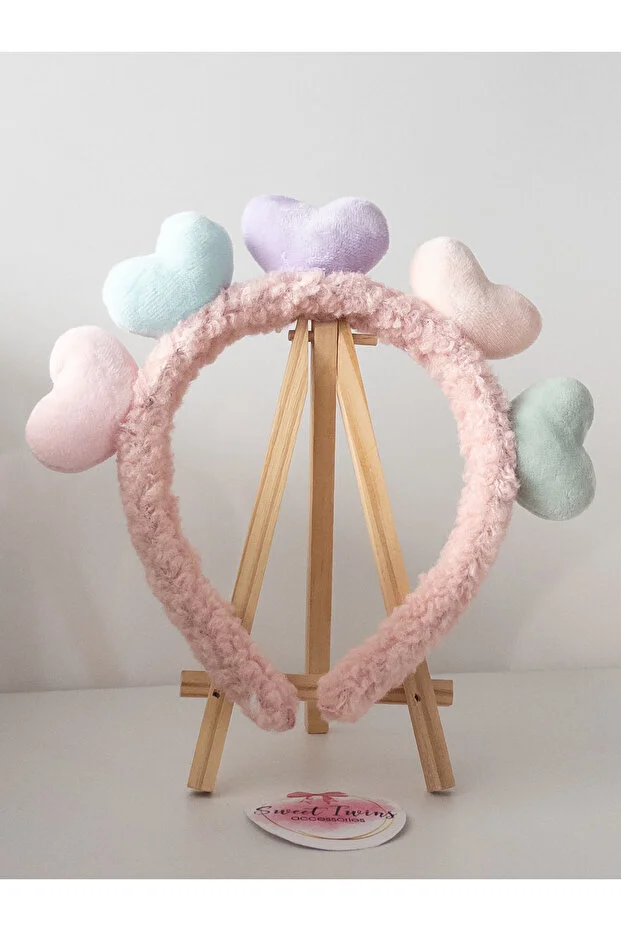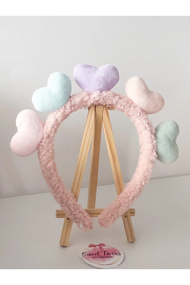 إكسسوارات التوائم الحلوة تاج أطفال على شكل قلب ملون وردي تاج أطفال من القطيفة
