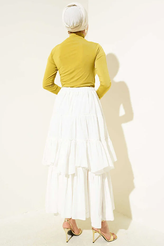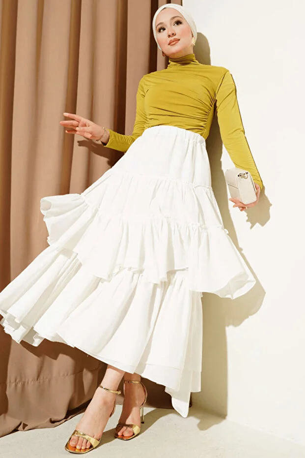 بدلة جسم من بلوزة رملية خضراء زيتية بياقة مدورة مكشكشة من LyLGyM FASSION IS PASSION