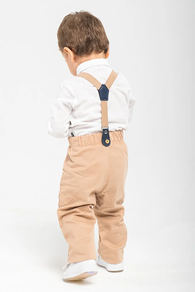 بدلة ماي بيرلا للأطفال مع قميص وربطة عنق على شكل فيونكة من 4 قطع وسروال قصير