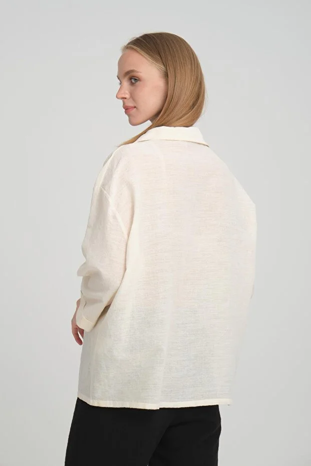 بلوزة ألكسندرغاردي V بياقة بولو ومقاس كبير من الكتان الناعم