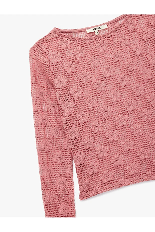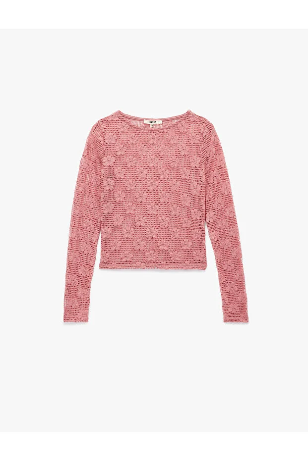 0 Review Of Product بلوزة كوتون شفافة بأكمام طويلة وياقة دائرية ودانتيل مزهر