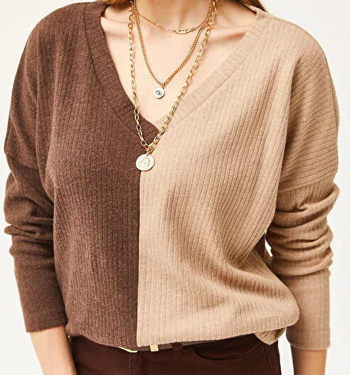 بلوزة نسائية فضفاضة من Olalook باللون البني الفاتح، مرفوعة، BLZ-
