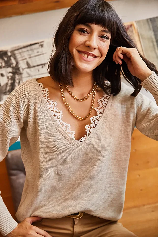 0 Review Of Product بلوزة نسائية من Olalook بياقة حجرية من الدانتيل المحبوك