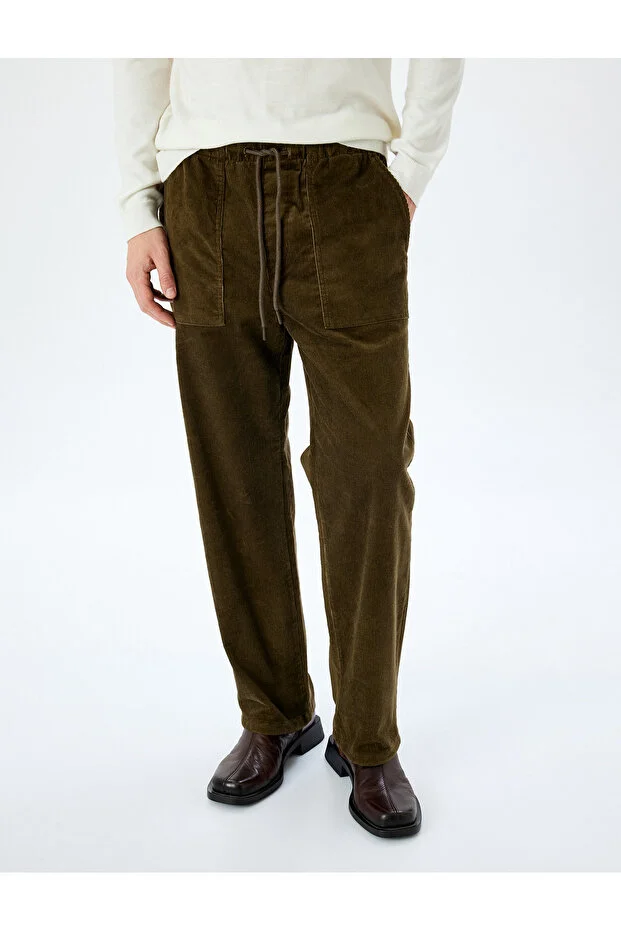 0 Review Of Product بنطال رياضي من القطن مع خصر مربوط من قماش مخملي