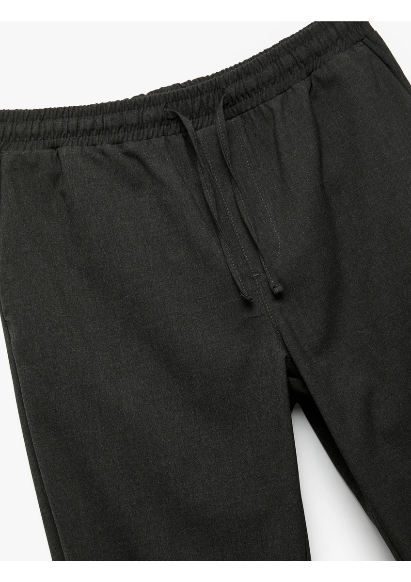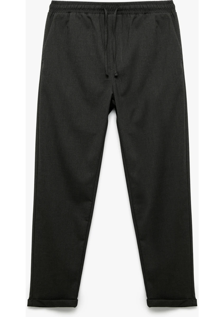 بنطال قطني بقصة ضيقة مع رباط عند الخصر، وحافة قابلة للطي، وتفاصيل جيوب