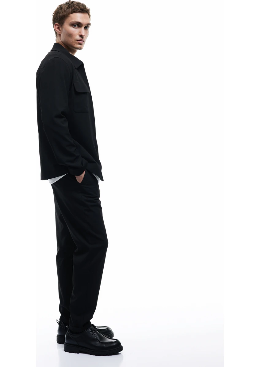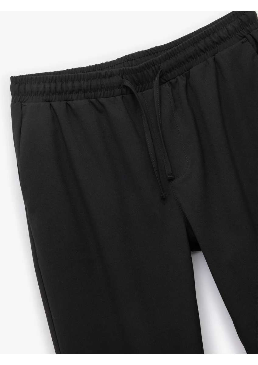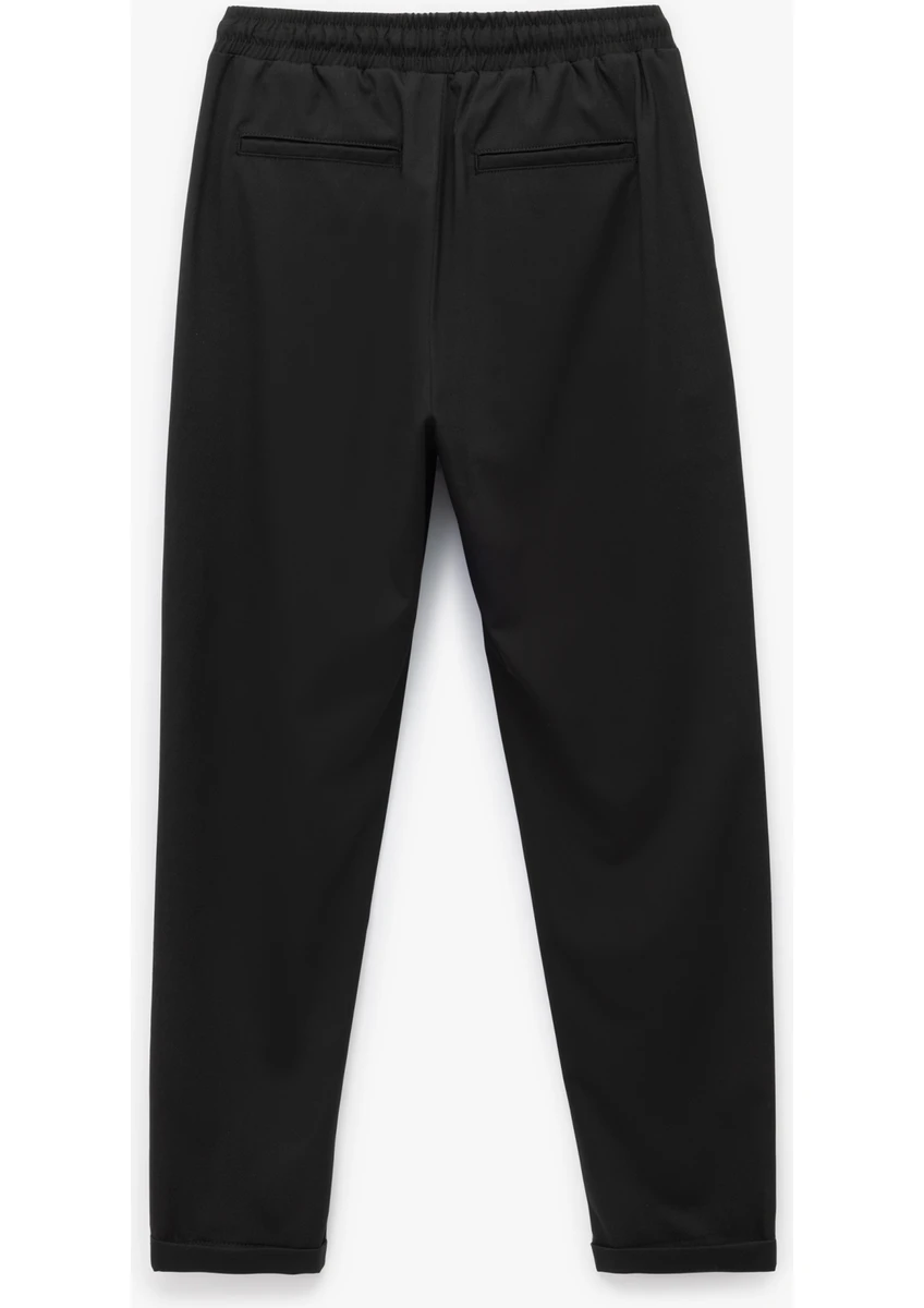 بنطال قطني بقصة ضيقة مع رباط عند الخصر، وحافة قابلة للطي، وتفاصيل جيوب