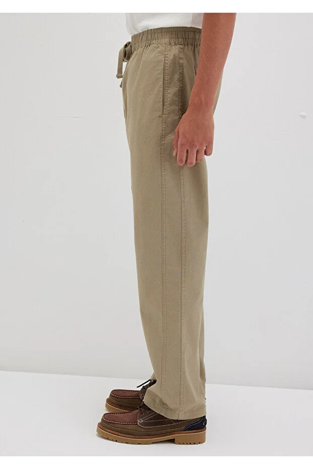 0 Review Of Product بنطلون بيج مع تفاصيل خياطة زرقاء 9