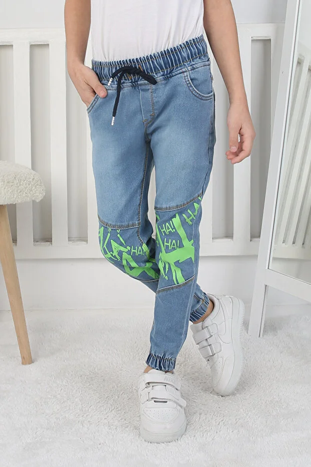 بنطلون جينز أزرق للأولاد من إي-كيدز بطبعة جرافيتي خضراء