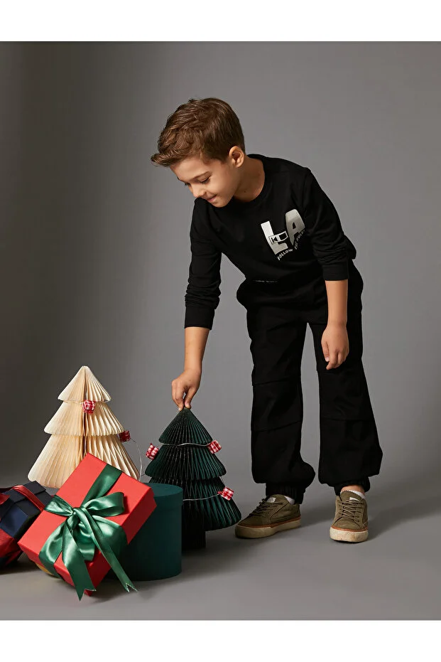 0 Review Of Product بنطلون جينز قطني بقصة باراشوت مع جيوب وحزام خصر مطاطي - بنطلون جينز قطني بقصة باراشوت