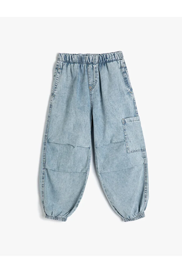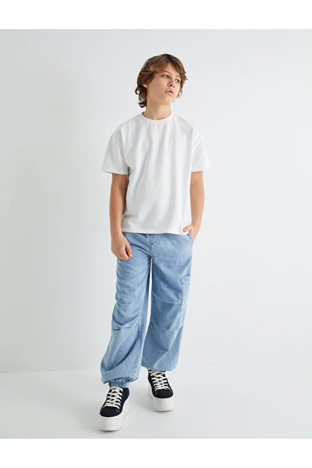 بنطلون جينز قطني رياضي بتفاصيل طي وجيوب - بنطلون جينز قطني متين