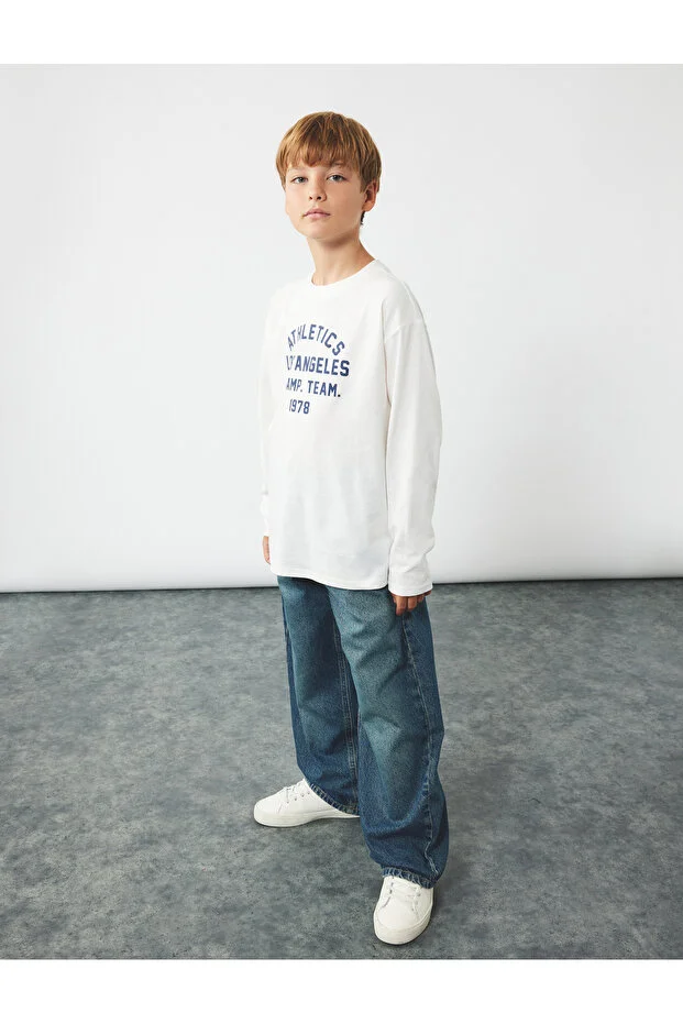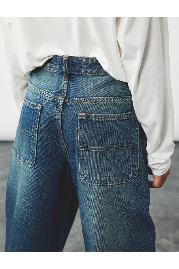 بنطلون جينز واسع الساق من كوتون - بنطلون جينز فضفاض