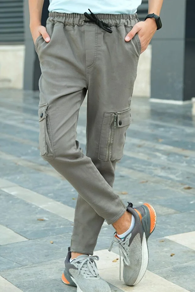 بنطلون كارجو للأولاد من بينا كيدز، مصنوع من قماش الكانفاس والليكرا