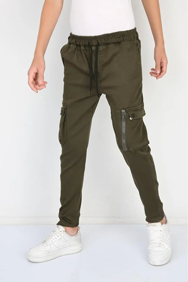 بنطلون كارغو للأولاد من بينا كيدز، مصنوع من قماش الكانفاس والليكرا، مزود بجيوب