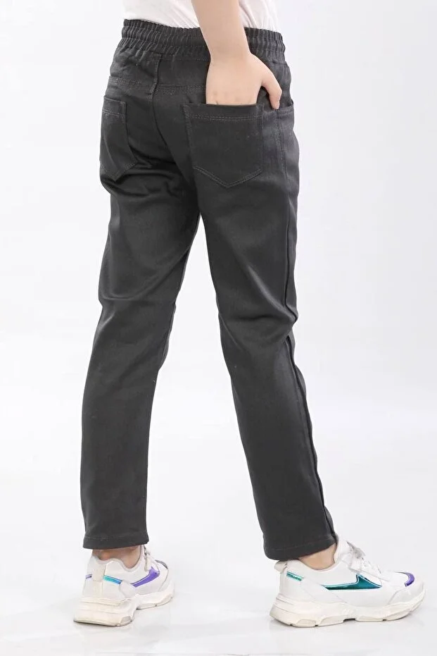 بنطلون مدرسي من قماش الكانفاس بخصر مطاطي للأطفال، رمادي داكن