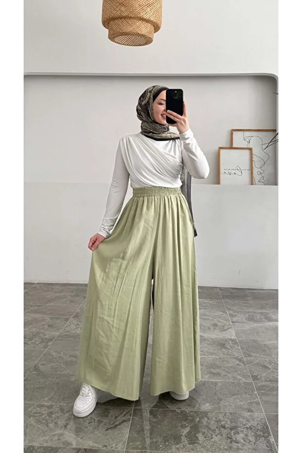0 Review Of Product بنطلون هاتون أتيلا بخصر مطاطي وساق واسعة من المودال - أخضر مائي