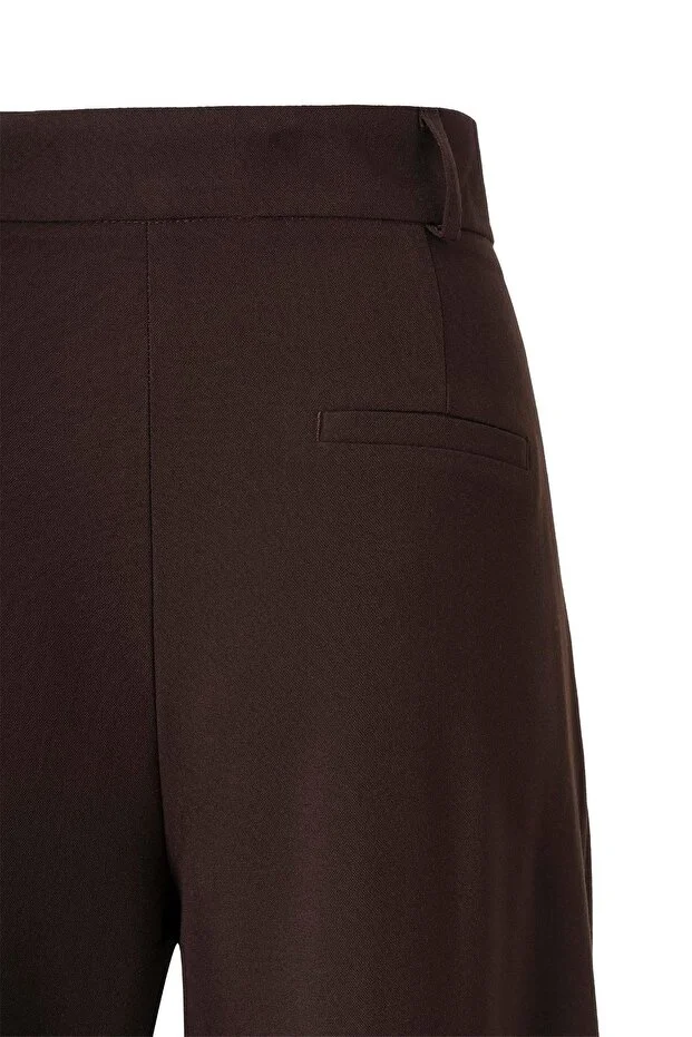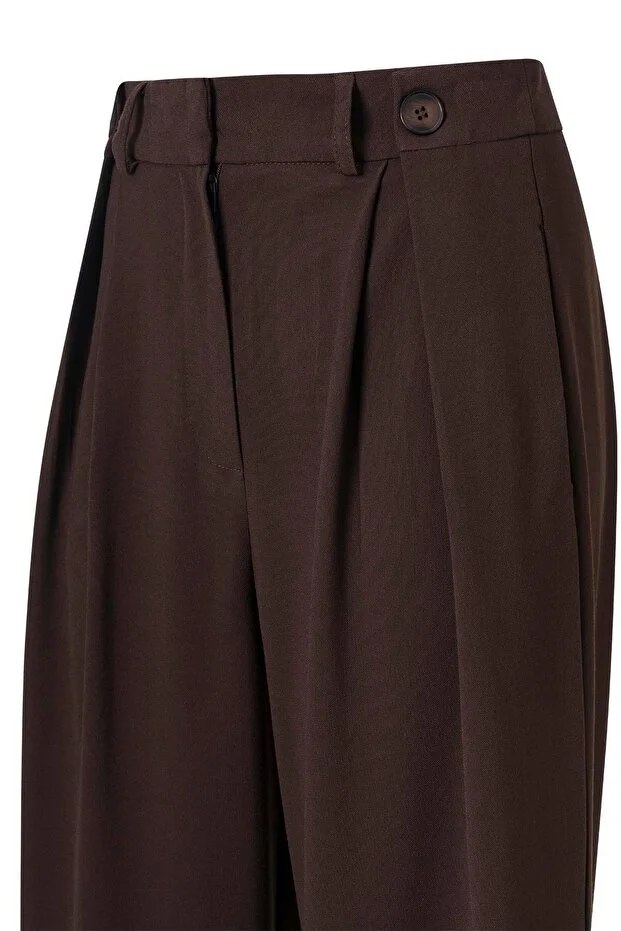 0 Review Of Product بنطلون Palazzo نسائي من FACETTE ذو خصر مرتفع وتفاصيل أزرار باللون البني المر