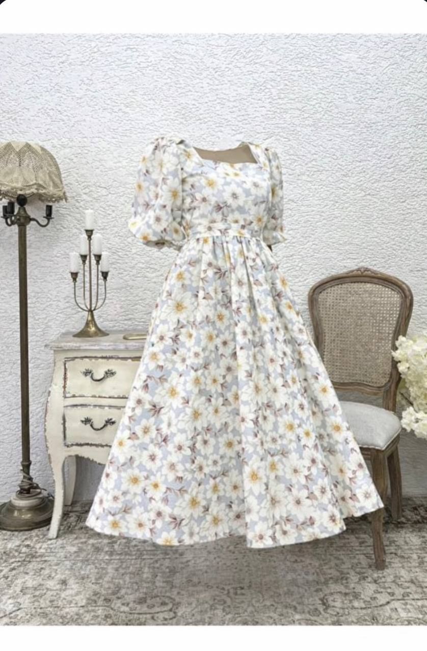 0 Review Of Product بوتيك كوتشوغوم فستان واسع بياقة مربعة بنقشة زهرة الأزاليا