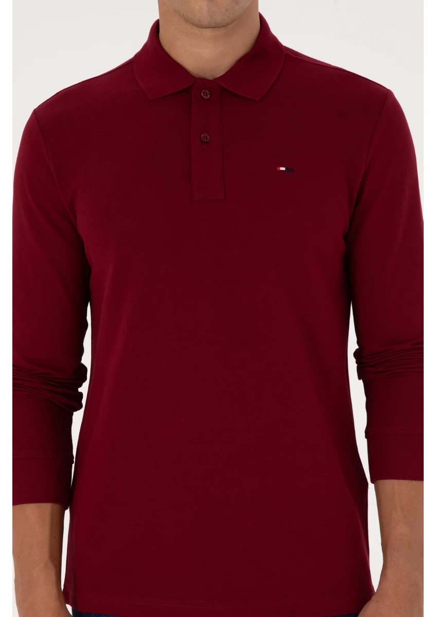 بيس. بولو أسوسييشن. سويت شيرت رجالي أساسي بلون أحمر عنابي، بقصة عادية وياقة بولو