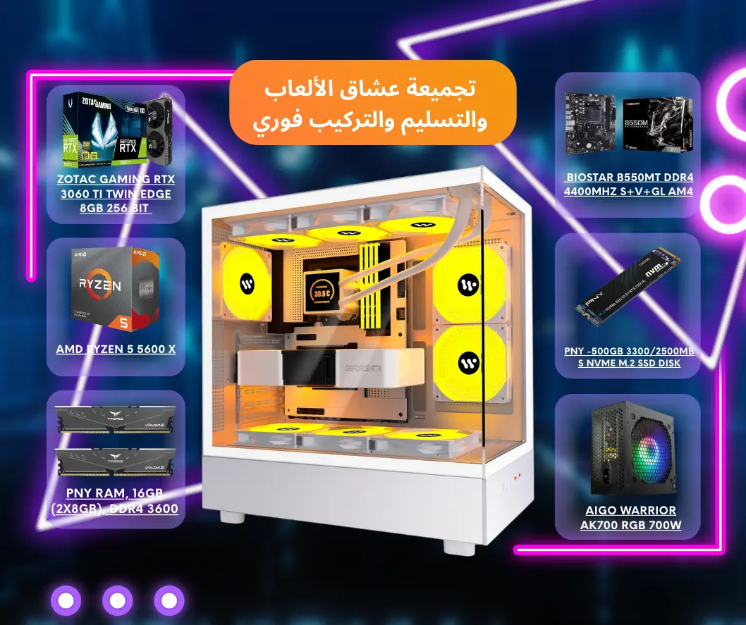 تجميعة عشاق الألعاب RTX3060 TI 8GB AMD 5 5600X 16GB RAM 500 SSD