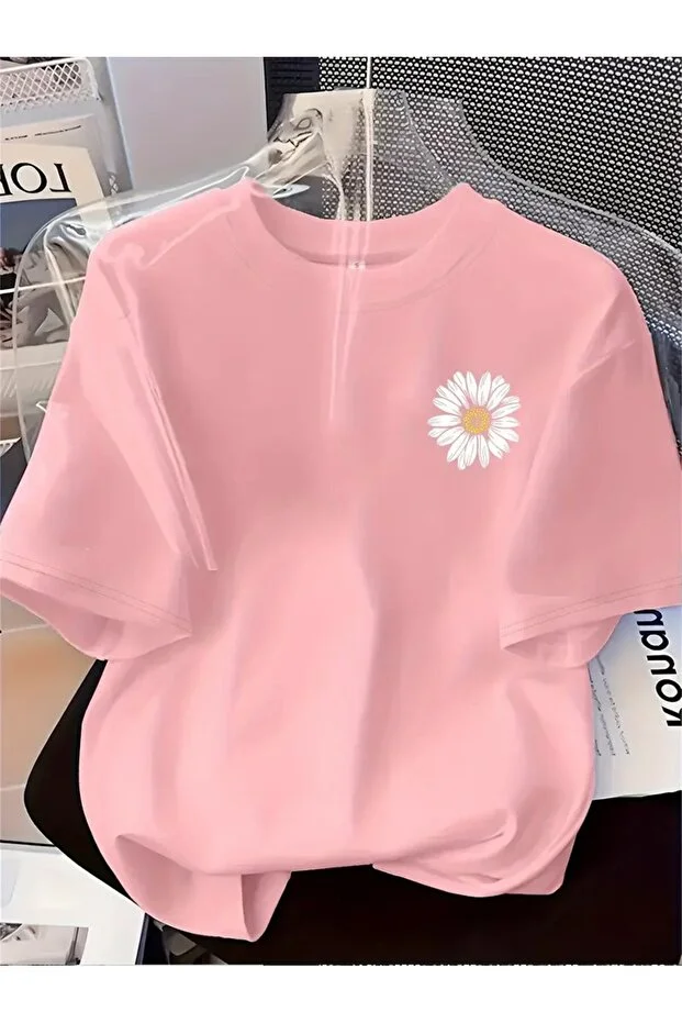 0 Review Of Product تيشيرت بنقشة زهور الأقحوان من H&GHAMLEGİYİM - رقبة دائرية مريحة، أكمام قصيرة
