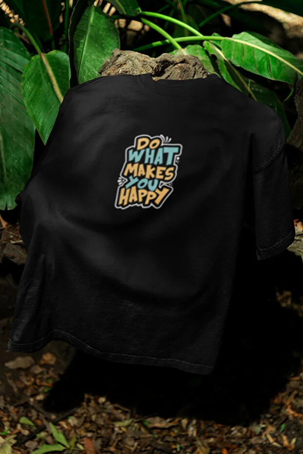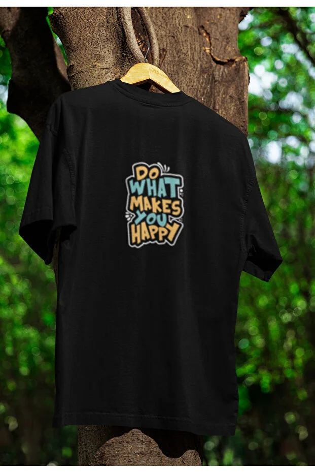 تيشيرت قطني بأكمام قصيرة ورقبة دائرية مطبوع عليه عبارة "افعل ما يسعدك" مناسب للجنسين