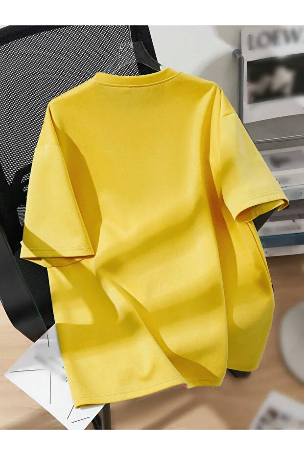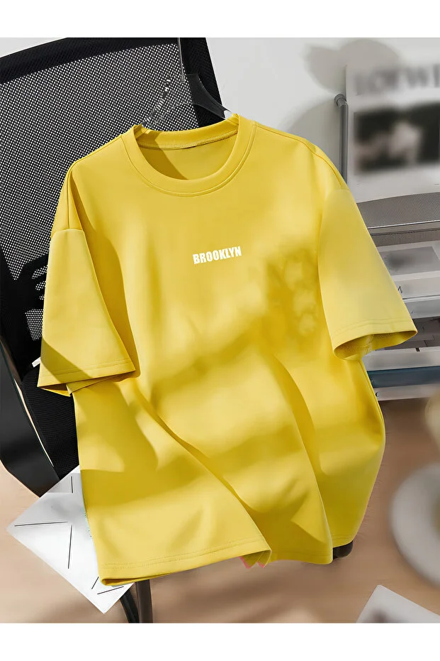 تيشيرت قطني كبير الحجم مطبوع عليه ألوان زاهية، (رجالي)، من ماركة Revasser، بياقة دائرية.