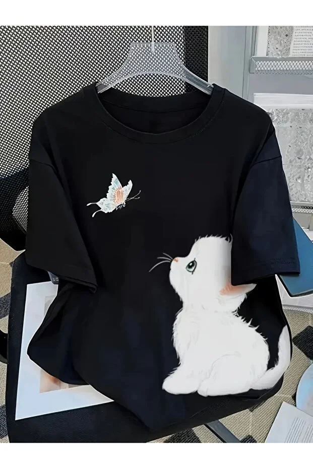 تيشيرت نسائي بنقشة قطة من جالاشوب
