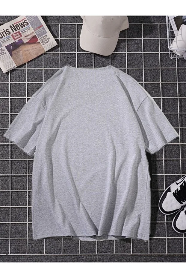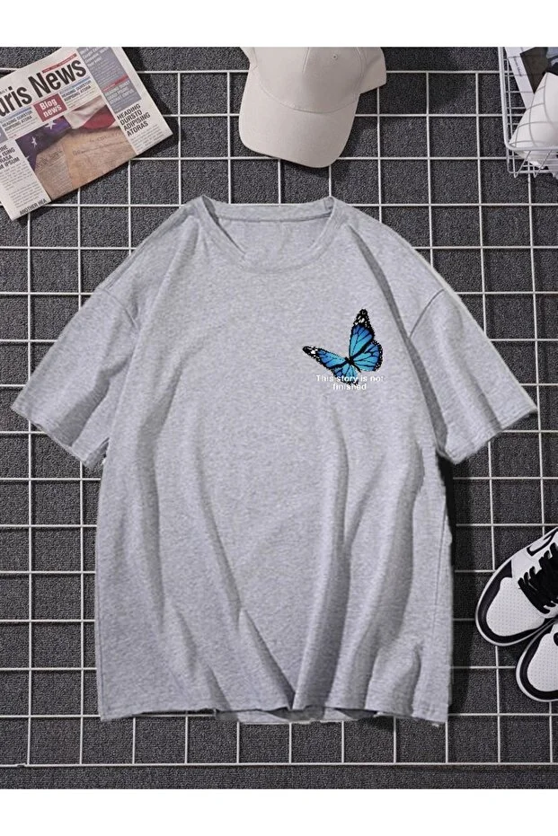 0 Review Of Product تيشيرت نسائي رمادي كبير الحجم مطبوع عليه فراشة من دوجان بوس