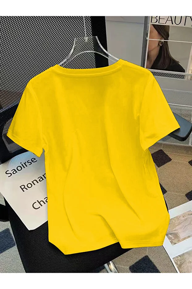 تيشيرت نسائي مطبوع من ميركوليدي، بقصة عادية مريحة وياقة على شكل حرف V