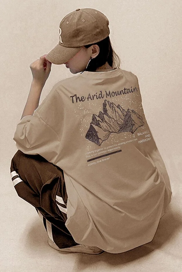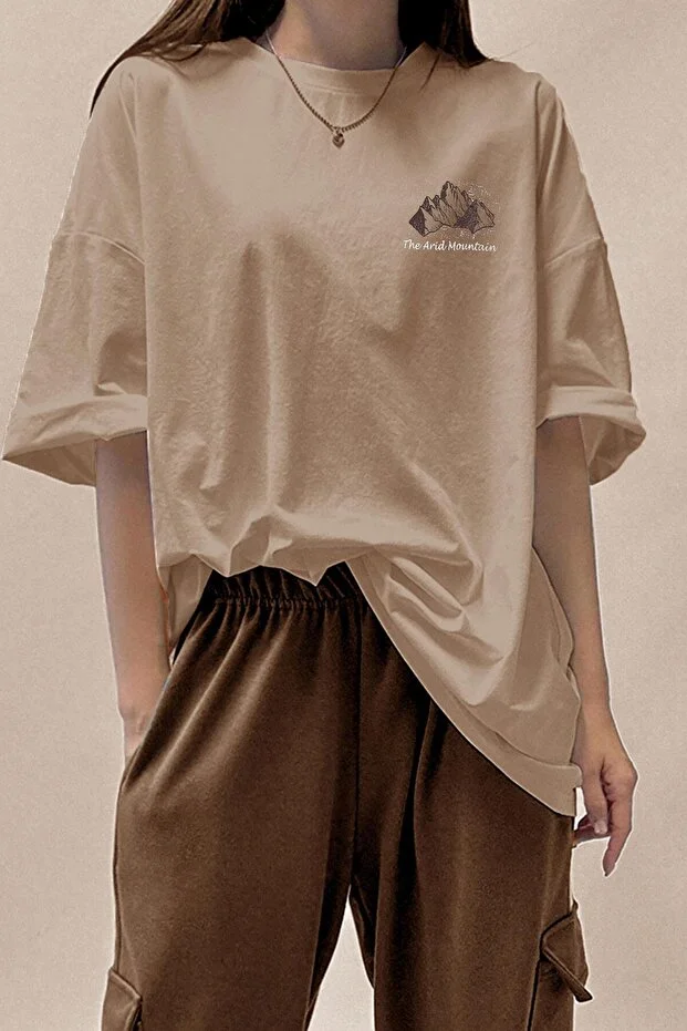 تيشيرت نسائي واسع من قماش الجمل بلون جبلي قاحلة، من تصميم مليونير