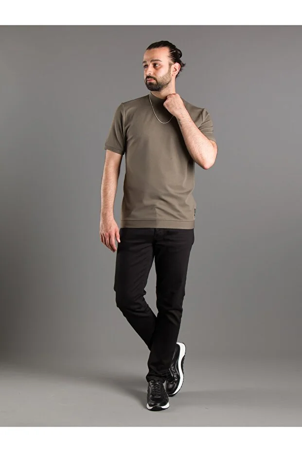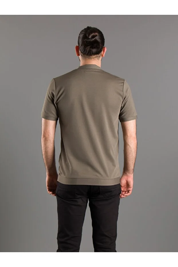تي شيرت ZEKI ÖZER للرجال باللون الكاكي الناعم بنصف رقبة
