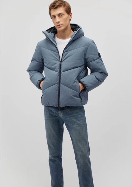 جاكيت أزرق بغطاء رأس منفوخ