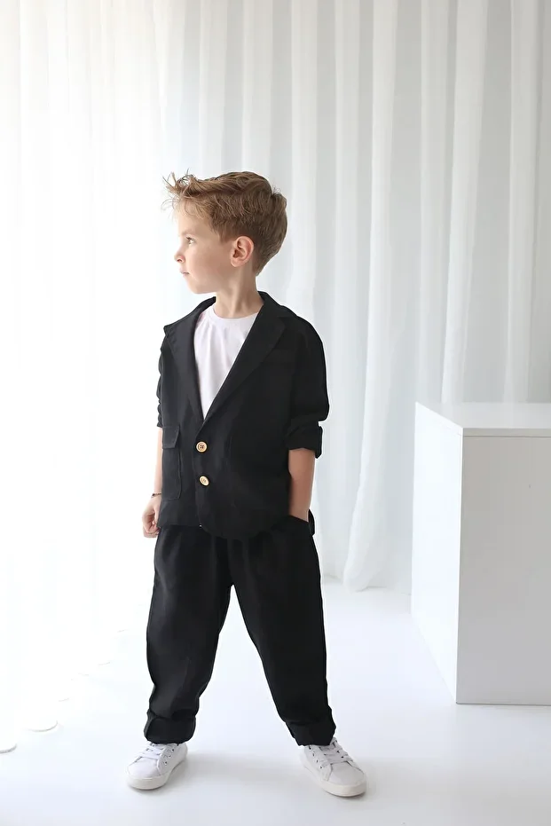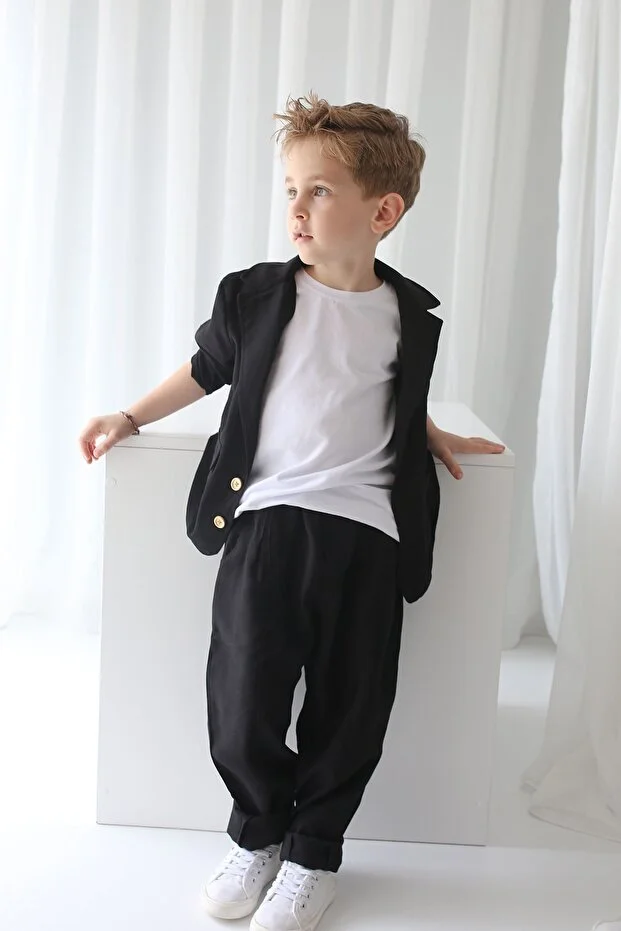 جاكيت أسود كاجوال من Catz Kids + بنطال أسود بنقشة الجزرة