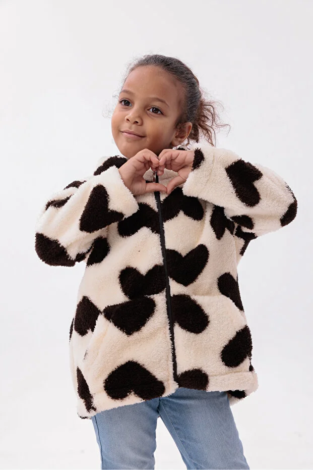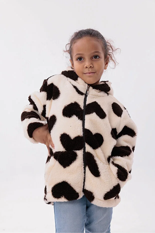 0 Review Of Product جاكيت أطفال مخملي بنقشة قلوب، مزود بغطاء رأس وجيوب على شكل جيب الكنغر، موديل RB-670