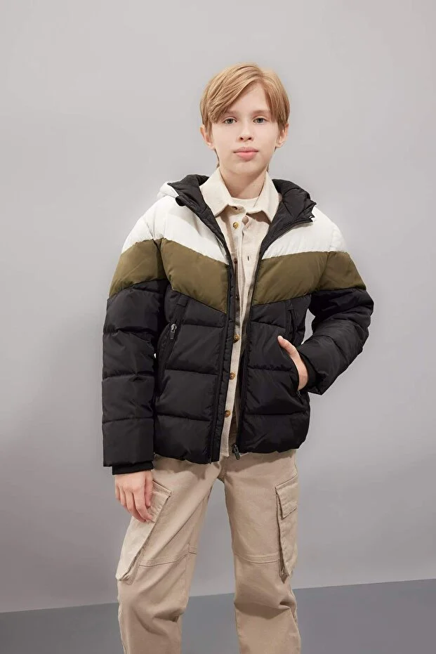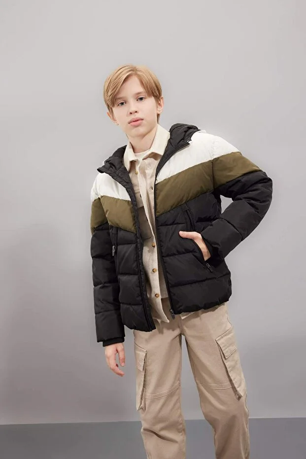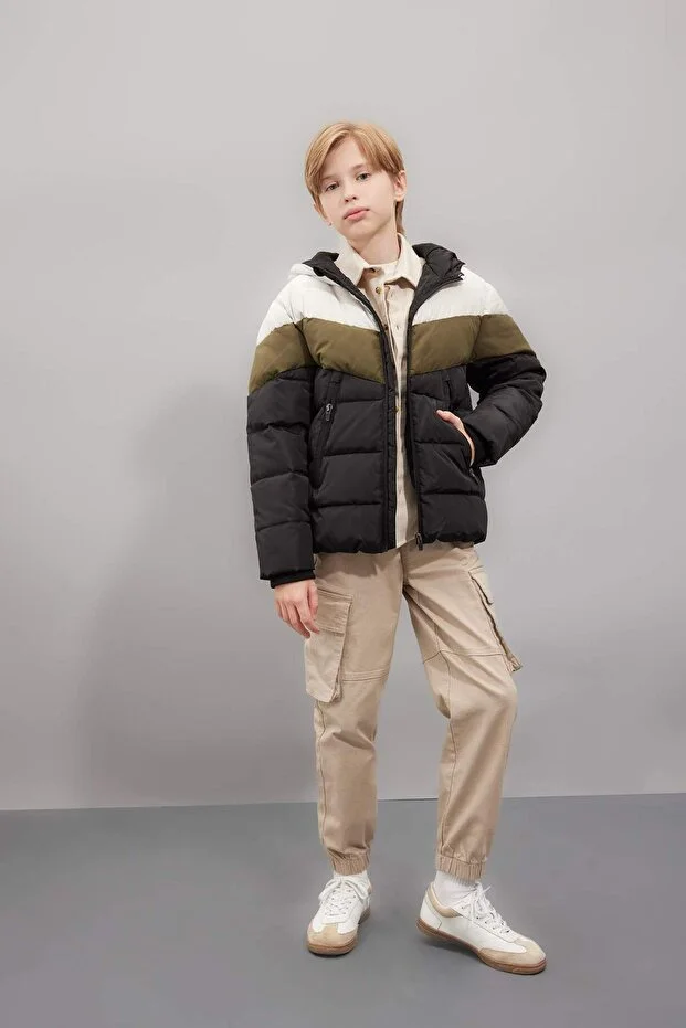 جاكيت ديفاكتو للأولاد مقاوم للماء، مزود بغطاء رأس وسحاب وجيوب وبطانة من الصوف C5511A824WN