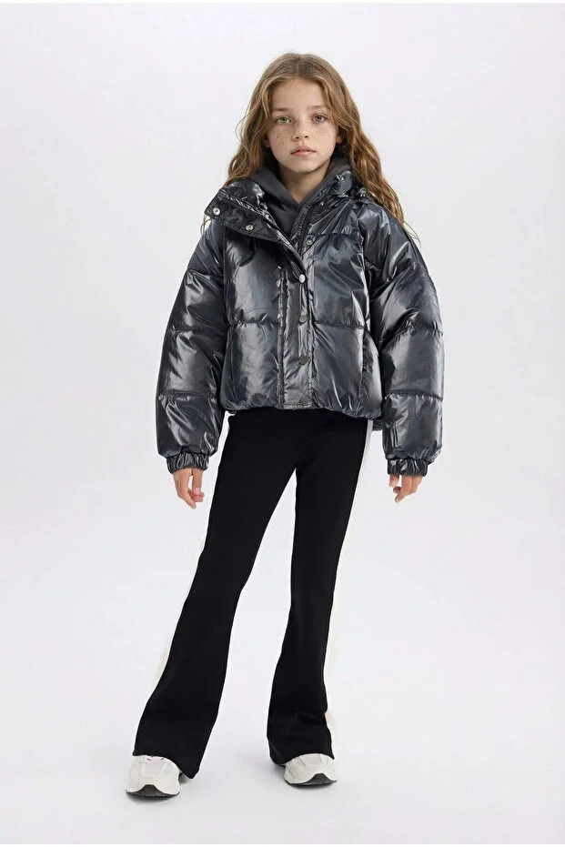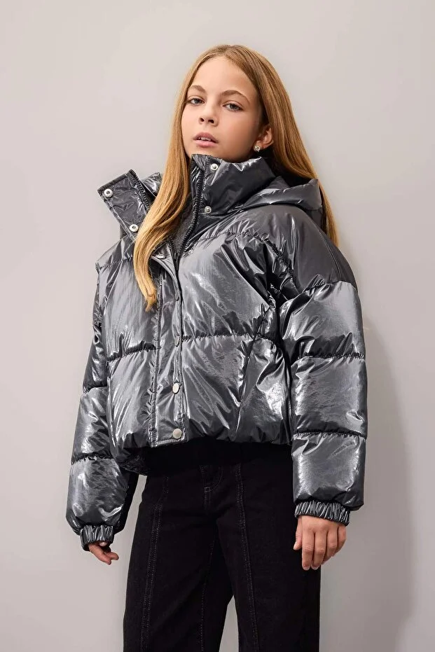 جاكيت ديفاكتو للبنات مقاوم للماء، مزود بسحاب وأزرار كبس، وغطاء رأس، C5765A824WN