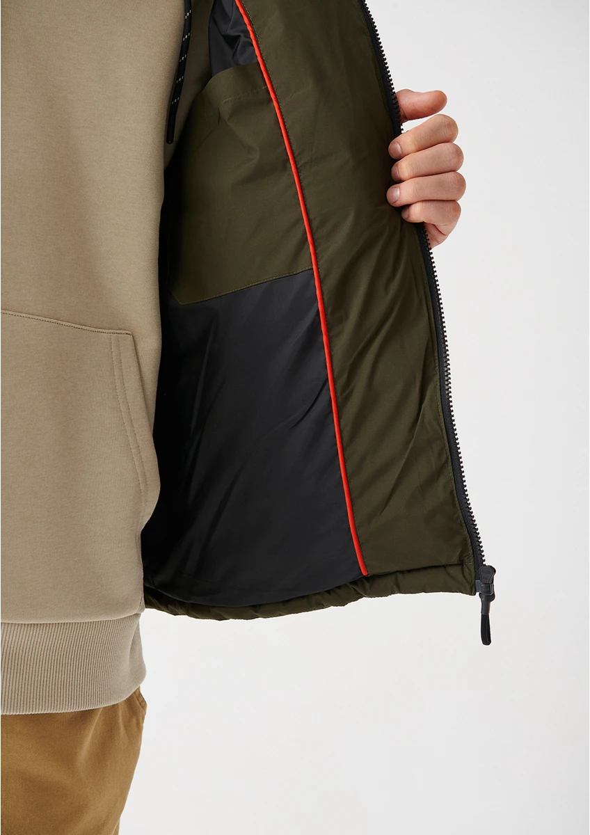 0 Review Of Product جاكيت رجالي أزرق بغطاء رأس بلون الكاكي، منفوخ