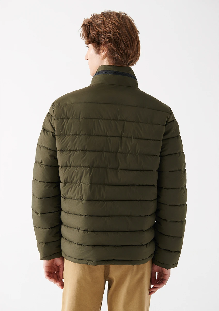 جاكيت رجالي أزرق بغطاء رأس بلون الكاكي، منفوخ