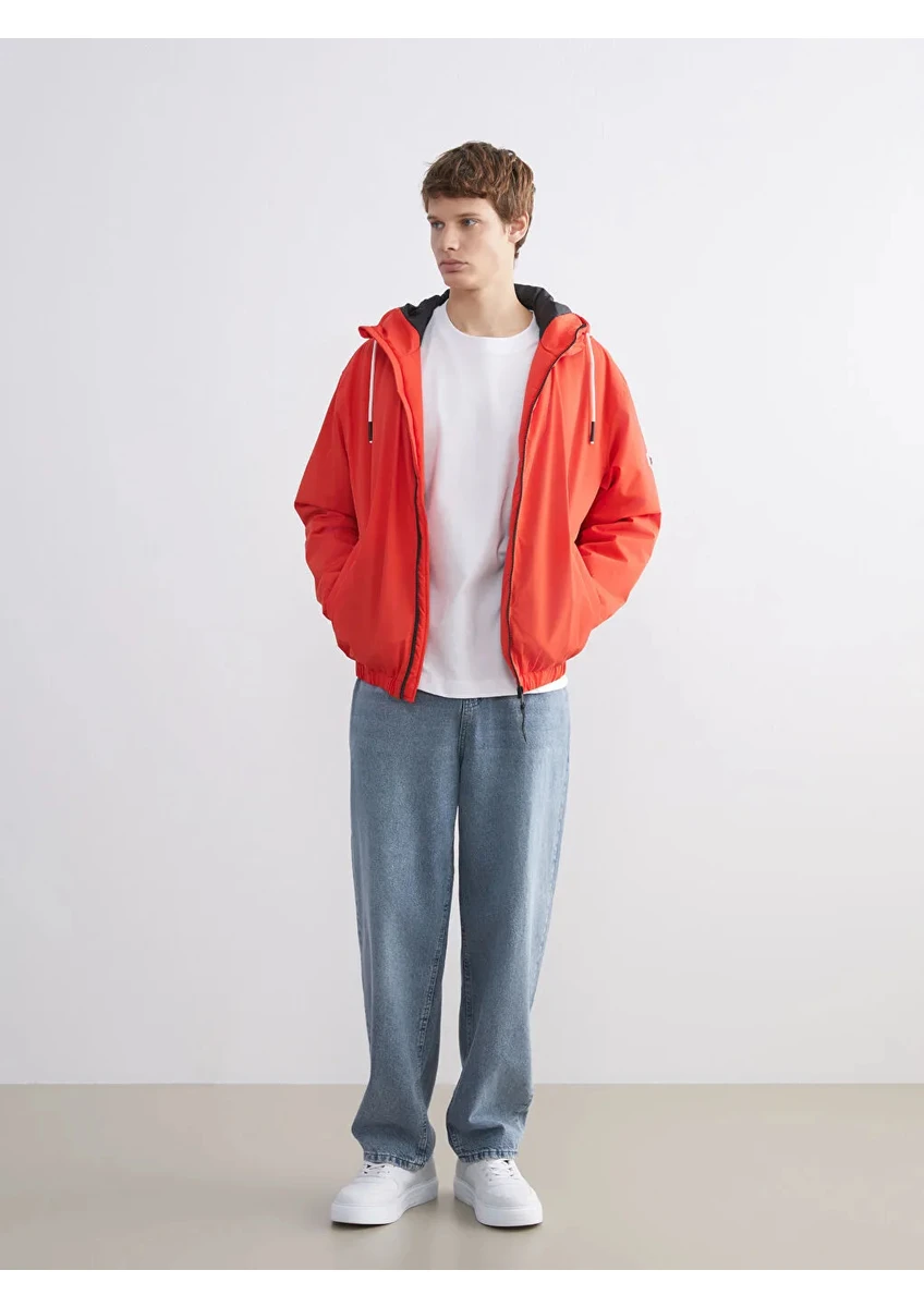 جاكيت رجالي متوسط ​​السماكة من إل سي وايكيكي إكس سايد، برتقالي اللون، بقصة مريحة وغطاء رأس
