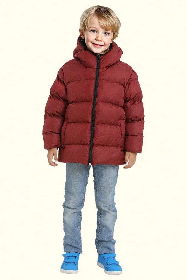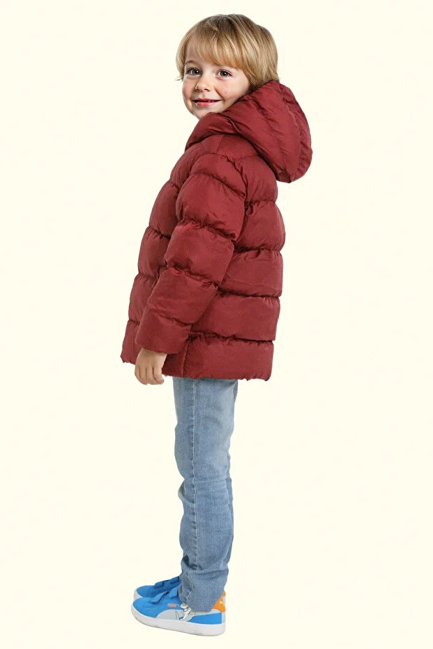 جاكيت شتوي منفوخ مقاوم للماء والرياح من الصوف للأولاد من فريمن، لون عنابي، مزود بغطاء رأس