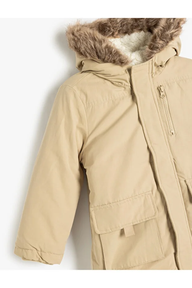 0 Review Of Product جاكيت قطني بغطاء رأس مزين بفرو صناعي وجيوب بغطاء