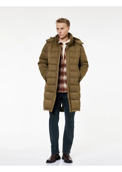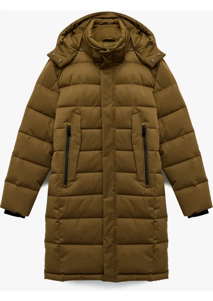 جاكيت قطني طويل الأكمام، مزود بجيوب وغطاء رأس، منفوخ طويل