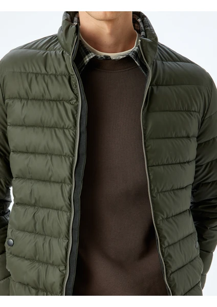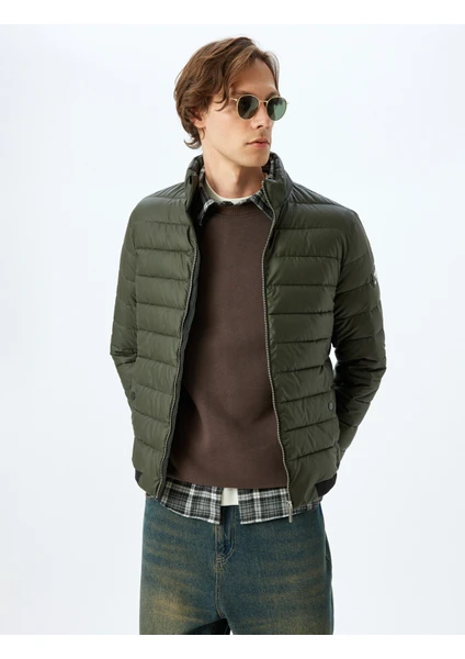 0 Review Of Product جاكيت قطني منفوخ بقصة ضيقة وياقة واقفة مع تفاصيل العلامة التجارية