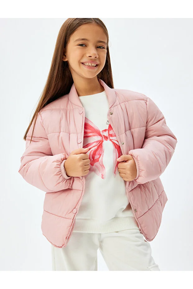 جاكيت كوتون المنفوخ بإغلاق بأزرار كبس وياقة منتصبة