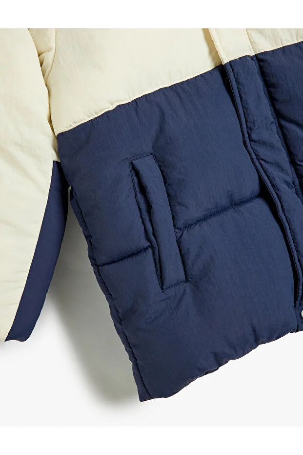 جاكيت كوتون مبطن بغطاء رأس، وجيوب، وواقي من الرياح