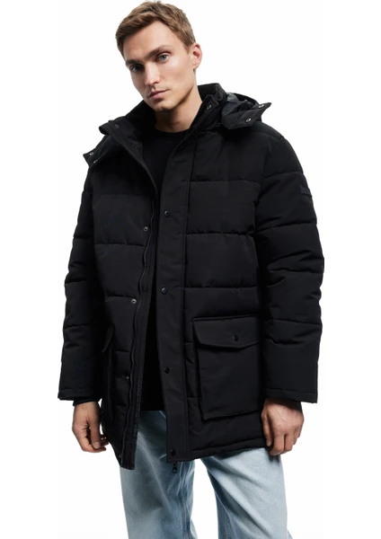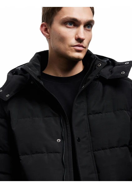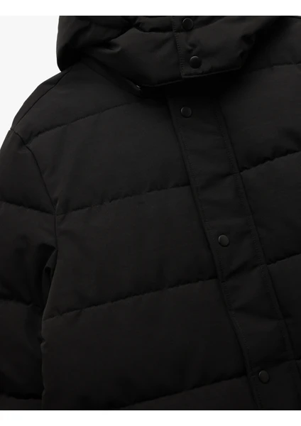0 Review Of Product جاكيت منفوخ بغطاء رأس من القطن مع تفاصيل جيب بغطاء مزود بأزرار كبس